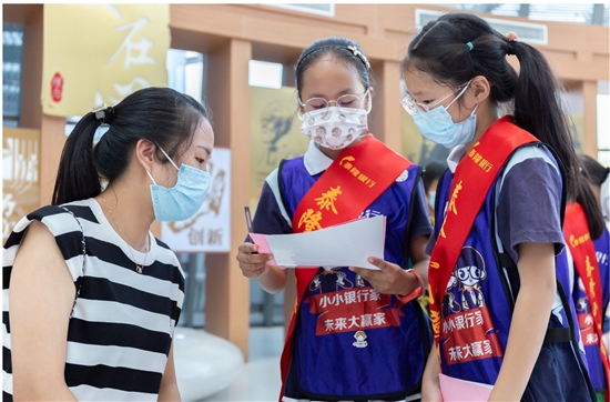 随后,工作人员教大家如何快速进行单手点钞。孩子们还分组进行点钞小游戏的比拼,点燃了参与热情。来自横湖小学四年级的小张同学说:“这个活动不仅能玩,还能学到新知识,实在太有意思了。”活动结束后,“小小宣传员”们佩戴反诈宣传绶带,来到门诊大厅,向广大市民讲解“反诈拒赌 安全支付”的知识,提高他们的反诈意识。