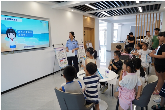 7月22日上午,滨海镇团委联合辖区派出所,为“爱心暑托班”的“小候鸟”们开展防溺水安全宣传。民警与孩子们积极互动,将未成年人如何预防溺水、溺水后如何自救、谨记“六不准”等知识深入浅出地进行讲解,切实提高孩子们的自护自救意识和能力。
