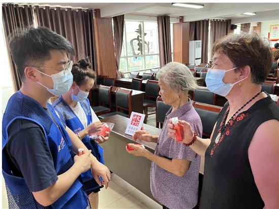 7月19日下午,市卫生健康局在大溪镇南嵩岩村文化礼堂开展“银发无忧 健康助老”志愿活动。现场,受邀医生对社区常见病防治进行讲解,引导老人养成科学的膳食习惯。健康团队还为村民们开展耳穴压豆、拔罐、刮痧以及免费送药等中医药治未病义诊行动。 通讯员 王璐妮摄