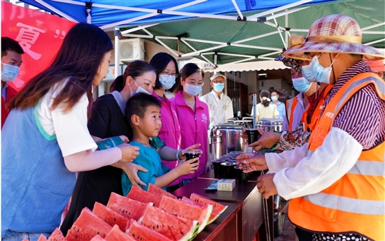 日前,滨海镇团委联合镇妇联开展“滨凉一夏·爱心茶水铺”活动,向路过的环卫工人、快递员、外卖小哥等户外劳动者,热情地递上凉茶、青草糊等解暑饮品,并提醒大家注意防暑降温。据悉,这项公益活动已经连续开展3年,用实际行动助力文明城市建设。