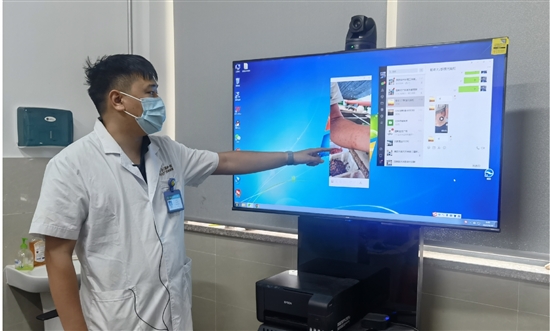 本报讯(记者郑灵芝文/图)“先试试多喝水,蹦跳并拍背……”前几天,市第四人民医院医共体石塘分院副院长林福明在“云诊室”远程接诊了一名突发疾病的船员。此时,患者正在千里之外的洋面上。结合症状和病史,林福明会同市第四人民医院专家联合诊疗,给予救助指导。6个小时后,船员疼痛消失,避免了渔船60多个小时的来回奔波。