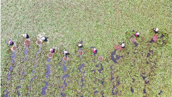 “我们现在每天早晨6点多下田,采到中午11点便收工。”采菱妇女告诉记者,9月份是菱角采摘的黄金时期,期间她们一天一般会劳作七八个小时,能有100至200元的收入。对于不少当地妇女而言,采菱角虽然辛苦,但能在自家门口挣钱贴补家用,也是一件开心的事情,而这也成为了当地村民增收的重要途径之一。