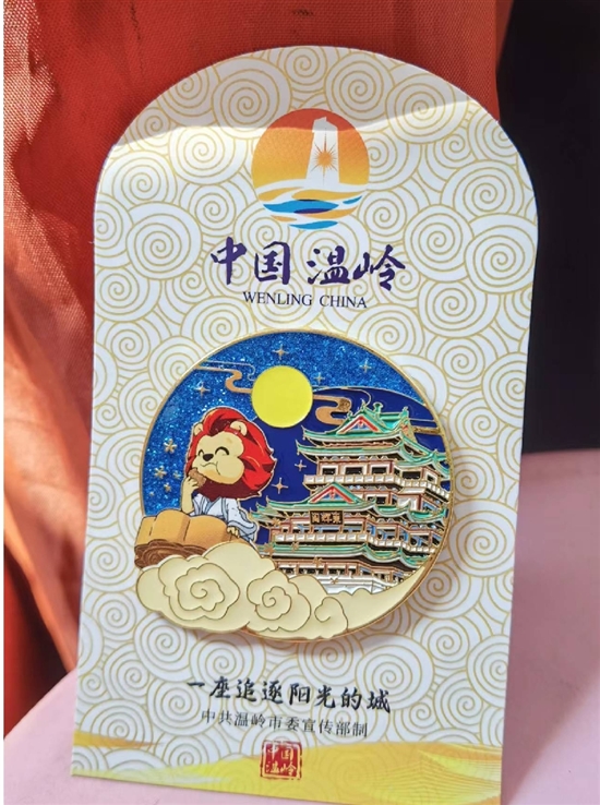 这枚小小的徽章,也通过夏波光老师的视频号互动到了北京、上海、杭州爱好者的手中。“第一次看到别人晒这枚徽章的时候,就觉得设计者特别用心,既有温岭的地标,又有一个令人印象深刻的小狮子,而且腾云驾雾吃月饼的样子更是惟妙惟肖。”网友“Jasalin是折腾君”留言说,通过这枚徽章,可以让她记住温岭,记住东辉阁,记住中国建筑之乡的美名,希望有机会可以去温岭旅行,更希望有幸带着这枚徽章一起到温岭。