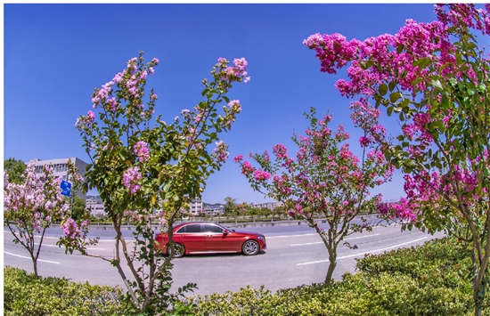 秋高气爽好时节,乡村旅游正当时。9月20日, 我市中心大道北面(温峤镇境内)车道两旁,各种颜色的紫薇花花开似锦,在微风中轻轻摇曳,美艳动人,犹如一幅秀丽的画卷。 记者 戴福年摄