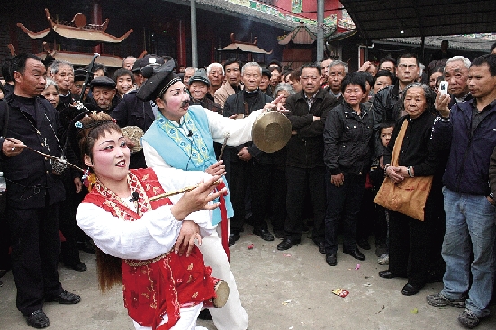 上洋胡保、岩头应保、甲头王保、蔡家保、后陈保、前陈保、单边街保……在庙会上,二十多个保的保下弟子,敲锣打鼓,扛抬着各种福礼前来庆寿,在山上白云宫的戏台上,依次在方桌上摆放好,为避免混乱,按顺序挨次上寿。这样,戏台上,所邀请的戏班演的庆寿戏,得演上一遍又一遍,由丑角扮演的“东方小仙”东方朔要向台下抛蟠桃二十多次。台下又有新的队伍上山敲锣打鼓来到时,台上的演员有时候竟也忘记了演出,转头观看。