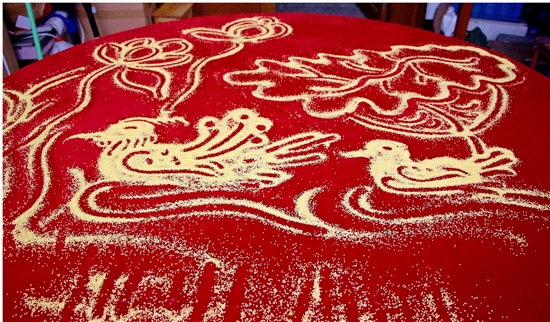 “这一门技艺一般多在祭祀时出现,寓意吉祥如意、五谷丰登,以展现当下美好‘福’景。”谈及米粒画,马若刚介绍,它非常像世人熟知的沙画,两者殊途同归,好像是孪生兄弟,一个用光线投影,一个是视觉幻影。