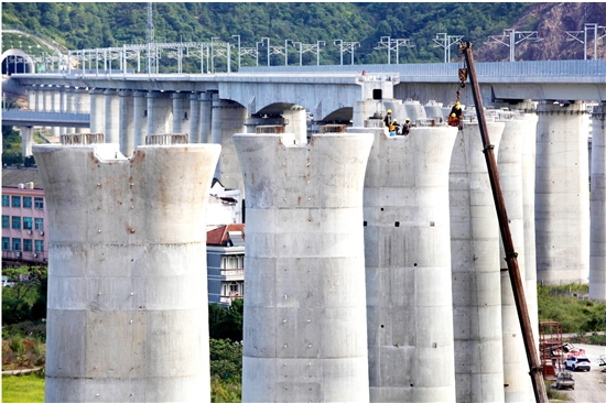 杭台高铁上行线是串联杭台高铁与甬台温铁路的联络线。上行线建成后,甬台温铁路列车可以通过上行线驶入杭台高铁,提高杭台高铁运行效率。目前,杭台高铁上行线泽国特大桥已完成桥墩施工,即将进入桥梁架设。