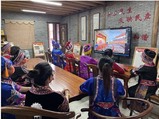 当天上午,新河镇山园村文化礼堂喜气洋洋,来自10多个民族的40多名少数民族同胞欢聚一堂。聆听报告时,他们情不自禁地挥舞手中的党旗,热烈欢呼。“作为中华大家庭的成员,我们要紧紧团结在党中央周围。”苗族同胞龙初梅说,“我相信,在党的领导下,我们的祖国一定会越来越富强,我们的生活一定会越来越幸福。”