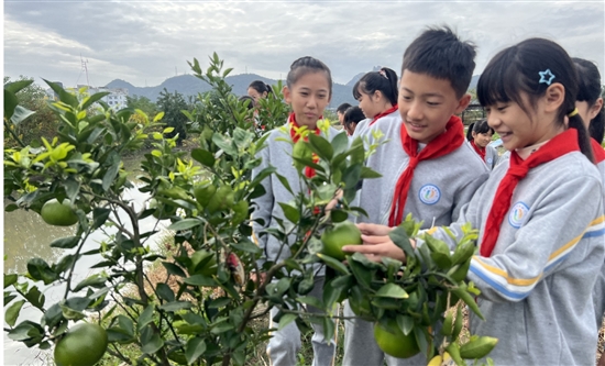 本报讯(记者赵云 通讯员蔡婷婷文/图)金秋,正是收获的季节。10月26日,大溪镇潘郎小学组织学生在“尚志耕读园”采摘葡萄柚,体会丰收的喜悦。