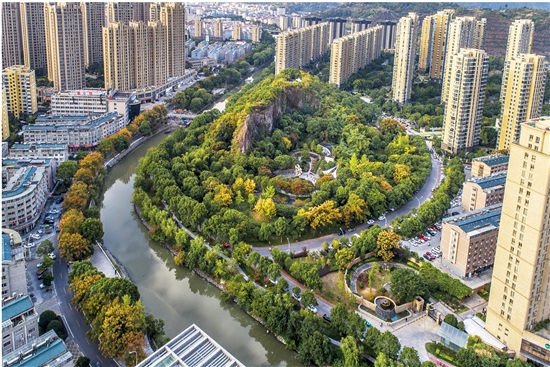 金秋时节,从高处望去,太平街道塔山公园层林叠翠,美不胜收。