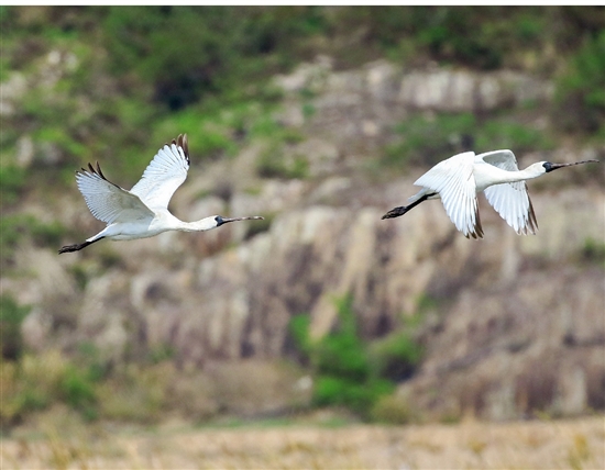 全球濒危鸟类黑脸琵鹭 “做客”温岭
