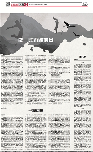 做一阵不羁的风,在力竭之际,在受挫之时,在风雨途中,奋勇向前,力战到底。
