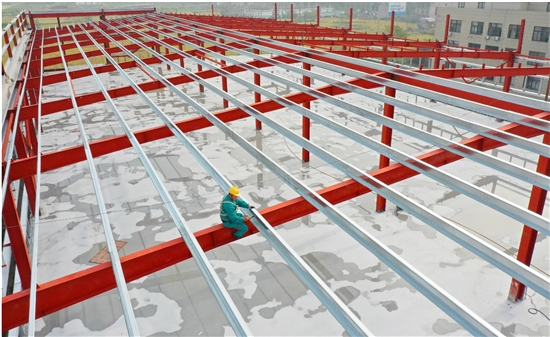 近日,温岭市振达钢板有限公司工业“标准地”项目,建设者在架设新厂房顶梁。新河镇今年新开工的5个工业“标准地”项目,目前有3个进入结顶阶段,另2个完成桩基施工。
