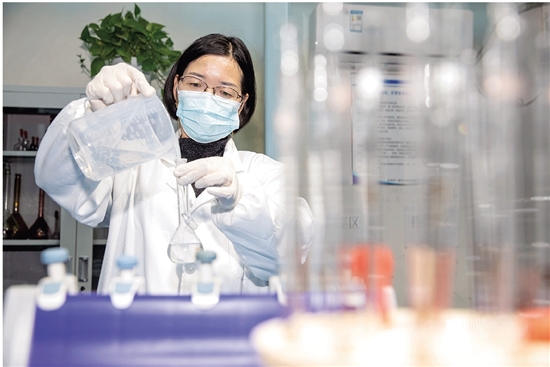 检测人员正在对污水样品进行检测。