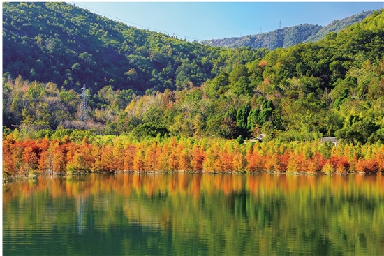 为了净化水质,水库科学种植了连片的落羽杉。