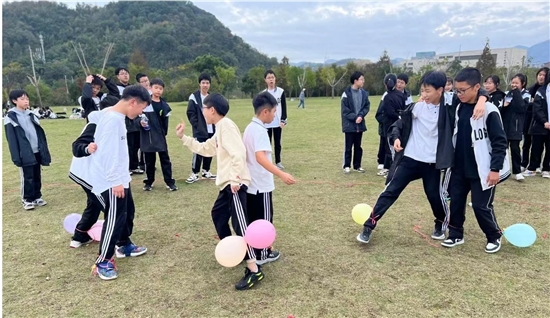 这次户外班会课,八(1)班班主任蔡鲜枝给学生们设计了拓展团结和心灵小游戏活动,通过“夸夸你”“夸夸我”,让学生发现自己以及同学身上的闪光点,让平时在班上存在感相对较低的学生得到关注,提振每个学生的自信心。此外,蔡老师还设计了套呼啦圈、踩气球等游戏,让学生们通过小组竞赛的形式增强团队凝聚力,在寓教于乐中放松心情。