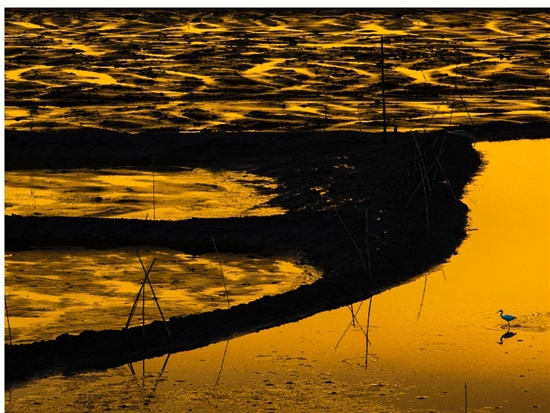 夕阳下,坞根大塘河湖泛金,不远处,是海天一色。穿梭在镇内的漫步道上,游客不舍美景,手机、相机拍摄声响不断。