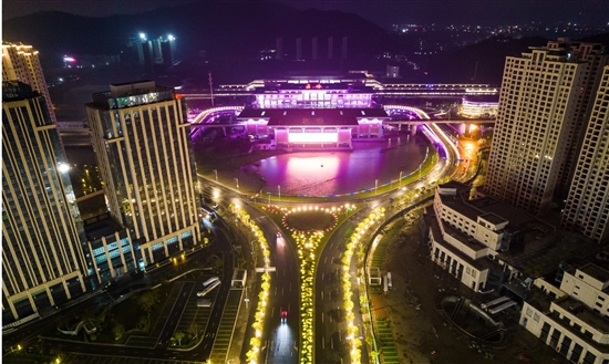 温岭新城开发区于今年6月启动高铁站及周边亮化提升工程,该工程总投资550万元,对台州市域铁路S1线站房、综合交通枢纽广场、公交换乘中心、停车楼等高铁站场内及周边十多个重要节点进行整体亮化提升,在点亮新城夜空的同时,也为市民创造了安全、便利的出行环境。