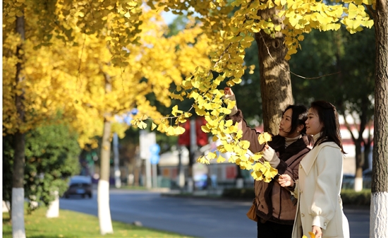眼下,市区人民东路上的银杏林迎来了一年中最绚烂的时刻,铺就了一条长约3公里的“黄金大道”,观赏者络绎不绝。