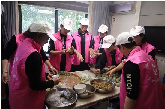 本报讯(记者叶琳文/图)“出锅啦!”近日一大早,市巾帼志愿者协会常务副会长林娇琴的家中就热闹了起来,洗菜、切菜、炒馅料、包馅、收口、上屉蒸制……十几位身穿粉色马甲的巾帼志愿者在麻利地做着青团,忙得不亦乐乎,她们正在为坞根山区的13位孤寡老人精心准备美食。很快,青团在她们的巧手下热气腾腾地出炉了。