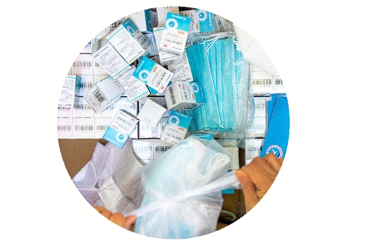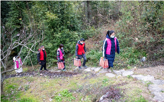 日前,在石桥头镇双岙村,志愿者们将装有退烧药、口罩、消毒物资以及防疫温馨提示卡的“暖心防疫包”,送到当地偏远山区独居老人手里。