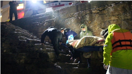 当天18时,两艘船只相遇。由于海浪很大,大家费了九牛二虎之力才将陈先生安全转移到救援船上,赵康立即为其处理伤口、加压包扎,陈丹君密切观察患者生命体征,防止其因失血过多而休克;22时,医院的救护车早已在码头等候,同时医院手术室里,手外科专家伍辉国和医生杨敏正在为这场手术而忙碌,紧张而有序地开展相关准备工作。随后,医院为陈先生进行了截肢清创手术,目前患者生命体征良好。