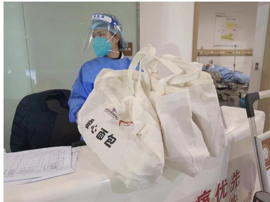1月1日晚上10时,火速志愿队收集了十余家爱心商家的面包,向市一院的医护人员传递新年的温暖。“爱心面包的活动已经开展很多年了,但这段时间,我们选择统一为医护人员送去关怀。”王祥云说,“去年年底到今年年初,医院面对疫情挑战付出了很多,一线医护人员都非常忙碌,为我们的健康保驾护航,所以我们就想着做点力所能及的事回馈他们。”