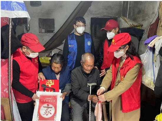 每到一户群众家中,义工队都详细询问他们的生活情况、健康状况等,并送上新春随手礼。 记者 郑灵芝 通讯员 何荣富摄