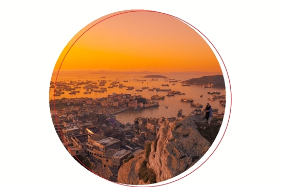 当红日洒下橙色的光芒笼罩着这片海岛渔村,当点点的渔船远远近近徜徉在金色的海里,大学生展开双臂拥抱了海,相爱的人紧紧地拥抱了彼此,我按下了快门,让这一刻停留……