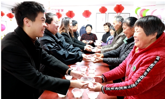 当天,大墩村村部里人头攒动,欢声笑语一片,60多名侨眷齐聚一堂欢度元宵。村里的侨眷因亲人身在异国他乡,不能团圆,新河镇新联会、侨联工作人员陪他们一起吃汤圆过元宵。热气氤氲,软糯的元宵在锅里翻腾着。起锅入碗,新联会、侨联工作人员给侨眷们盛上一碗碗汤圆,开心的笑容洋溢在每个人的脸上,幸福浸润到每个人的心底。