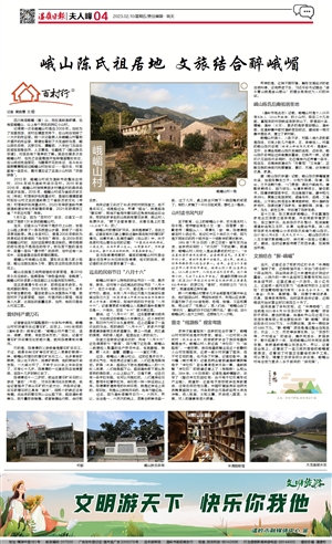 记得第一次去峨嵋山村是在2009年。当时为了发展旅游,该村在镇里支持下,在山间谷地种了一大片的向日葵。那一次记者跟人去峨嵋山村看那片盛开的向日葵,顺便也看到了大龙庙驸马宫、峨山陈氏总祠、古罗汉松、鹰雕岩、八字台门及远处的桨桩岩等自然、人文景观,也翻阅了《峨山陈氏宗谱》,对族史有个简单的了解。其后也曾多次去峨嵋山村,在风之谷蓝莓园开始种植蓝莓时去过,在山间谷地油菜花、马鞭草开花时去过,在斗米尖越野赛赛程经过峨嵋山村时去过……每次去,村里都有一些变化,真可谓见证了这座小山村的“华丽转身”。