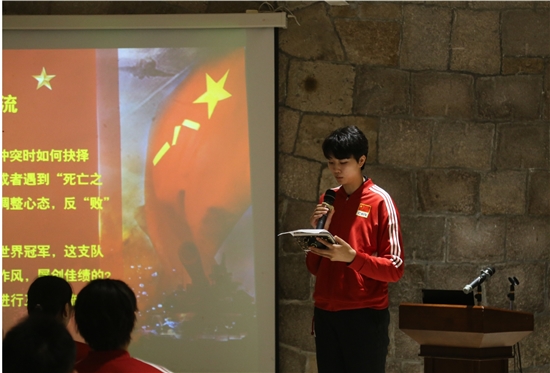 当晚6时30分,交流活动开始。市人武部政委卞卫星向大家介绍了温岭在历史上的重要军事意义。接着,多次参加过阅兵任务的陆军第82集团军某航空兵旅参谋长颜鹏志分享了自己的亲身经历。中国女排队员们聚精会神,仔细聆听,所有人都深受触动,深刻感受到了拼搏精神和为国奉献精神。