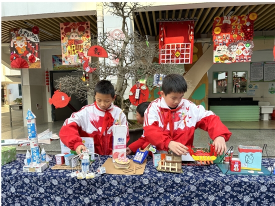 寒假里,很多学生不仅自己行动,还带动家人、亲戚们一起回收,最多的一人收集了565个牛奶盒。每个班级都有大收获,最少的回收了600多个,最多的回收了3000多个。此外,学生们纷纷发挥自己的想象力和动手能力,将牛奶盒制作成各种创意物件,如机器人、车子、房子等。