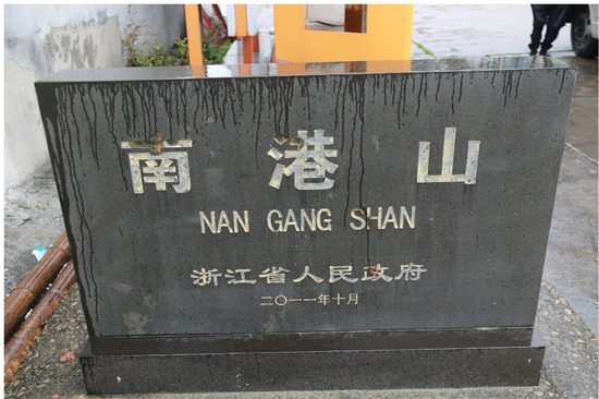 到达南港山岛时,记者发现村口有石塘箬山渔家手工达人陈祥来设计的南港村标志,正面是半截头向上的大带鱼,背面则是群鱼与海鸥,还有“直挂云帆,乘风破浪”八字。