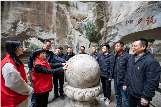 2月19日,新河镇硐天新村,当地党群服务中心利用流动党员返乡的有利时机,组织流动党员重温入党誓词,参观了解新河石文化历史,聆听专题党课宣讲,为返乡流动党员补训、充电。