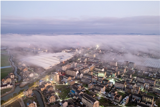 近日,受冷空气影响,我市沿海部分地区出现了云雾、云海等壮丽景观。从空中俯瞰,排江倒海的云雾连绵成白色海洋,村庄、道路在云雾掩映下若隐若现,宛若仙境。