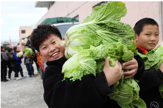 收到了恩利共富工坊送来的爱心大白菜,学生们的脸上乐开了花。