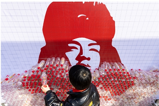 废瓶盖拼出“活雷锋”