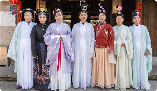 镜头面前的阿姨们毫不怯场,一袭古装穿梭在温峤老街,展现着她们的优雅和自信。