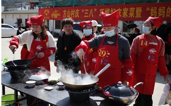 当天,大溪镇方山村举行迎“三八”农家巧媳妇厨艺大赛,30名参赛选手各显神通,烹饪出自己的拿手好菜,展示了新时代农家妇女勤劳聪慧的风采。 记者 周学军摄