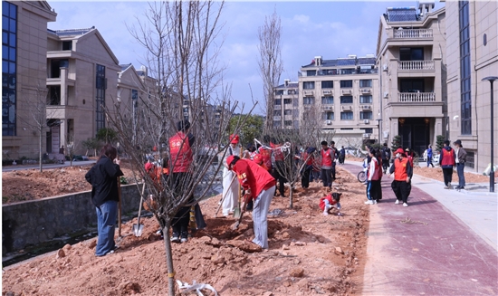 3月11日,在太平街道山下金村,市自然资源和规划局组织我市部分中小学生、文明志愿者、社会团体、普通市民等500多人开展义务植树活动。经过共同努力,新栽下的鸡爪槭、桂花、红梅等植株,一株株、一排排,昂首挺立,焕发出蓬勃的生机。