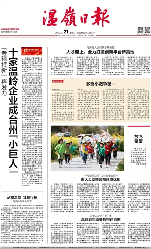 本报讯(记者赵碧莹)走在“专精特新”路上,温岭喜事连连,继50家企业上榜省专精特新中小企业名单后,不久前,我市又有10家企业在台州市级专精特新“小巨人”企业名单上榜上有名,入选数量居台州首位。