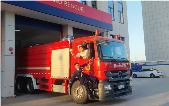 “工作太忙了,一直没机会和她去拍婚纱照。这次她请假从山东赶过来,我们也特意选在我工作的地方拍照,觉得更有纪念意义。”韩鹏说,由于工作原因,一直都是妻子更包容理解自己,以后要多陪伴和照顾妻子。