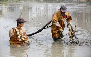 当天是春分节气,城南镇农民忙着种植莲藕,开始新一年的生产。莲藕微甜且脆,可生食,也可做菜,而且药用价值相当高,受到消费者的青睐。