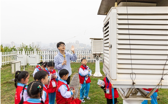 3月23日是世界气象日,当天下午,在温岭国家基本气象观测站,工作人员向方城小学学生普及气象知识,并为他们讲解云、能见度、天气现象和雨量测量等观测方法,增进孩子们对气象的了解,进一步增强他们的环境保护意识。