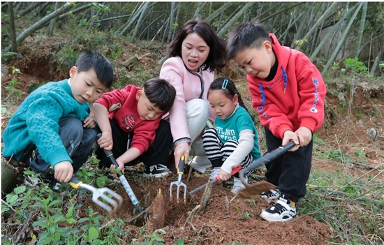 4月7日,新河镇长屿幼儿园的老师带领小朋友们走进山中,开展寻挖竹笋活动,让孩子们体验劳动的乐趣,提高认知大自然的能力。