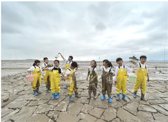 他们的小手、小脸、鞋子上沾满了泥巴,但这些“小泥人”的兴致丝毫不减,想要在泥地里再探索一番。满载着捡拾来的小贝壳,谈论着捡拾的有趣经历,孩子们都兴奋极了:“太好玩了,我从没在泥巴里玩得这么尽兴!最重要的是,我还学到了课堂里没学过的知识。”