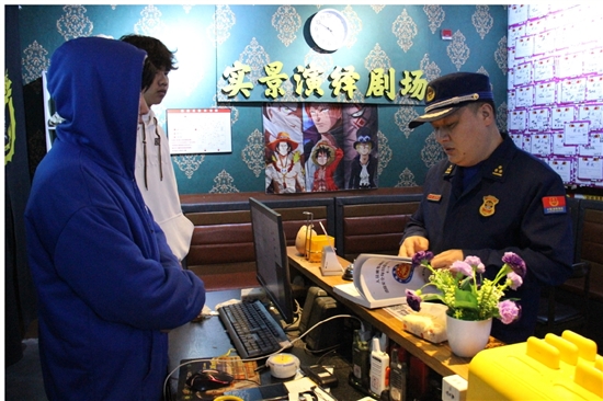 本报讯(记者郑灵芝 通讯员陈星星文/图)近年来,密室逃脱、剧本杀等娱乐活动迅速走红,受到广大年轻消费者的青睐,但这些场所也潜藏着巨大的消防安全风险。近日,市消防救援大队对密室逃脱、剧本杀类人员密集经营场所开展消防安全检查“回头看”,压紧压实场所消防安全主体责任,防范新业态领域火灾事故。