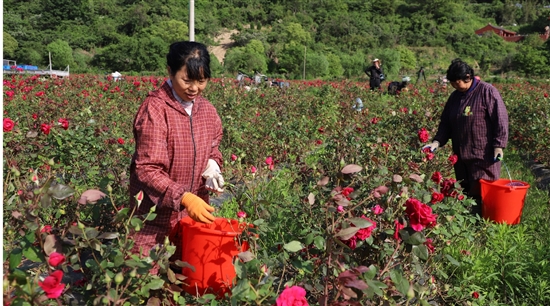 据介绍,当地种植的玫瑰花为墨红玫瑰花,也是食用玫瑰品种之一。由于受海拔、气温等因素影响,墨红玫瑰花的花期也会稍显不同。在我市,玫瑰花的花期持续时间较长,从今年4月开始,可一直持续到9月,花期长达5个月,具有可观的观赏性。