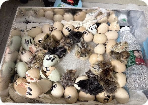 这21天,每到下课,同学们都一窝蜂地围到“蛋巢”边,仔细查看每颗蛋的状态。老师告诉我们,每天上午、下午都要翻一次蛋,防止胚胎与壳膜粘连。今天是1-5号翻蛋,翻蛋的同学一个个小心翼翼,轻拿轻放,生怕伤到了这些幼小的生灵。即使是休息日,也阻挡不了同学们对小鸡的热情,大家自告奋勇地做翻蛋员:“我我我,我家离学校近。”“我,我来翻”……